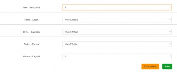 In corrispondenza della 25° giornata e selezionando “Partite rinviate” si può accedere al dettaglio delle singole giornate. A questo punto, non resta altro che modificare le opzioni relative ad Atalanta-Sassuolo, Inter-Sampdoria e Hellas Verona-Cagliari, scegliendo il voto d’ufficio desiderato.
